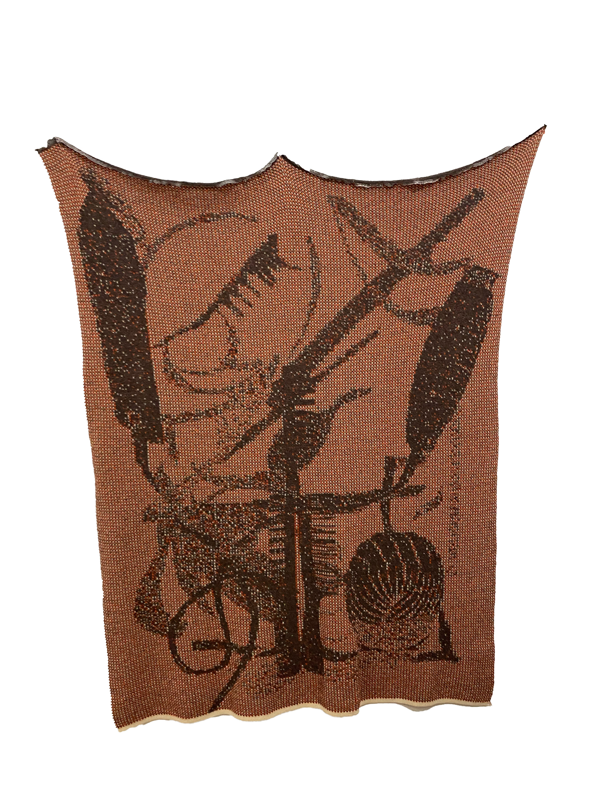 Wave Check Tapestry, Jacquard Woven, embroidered beads, 2023